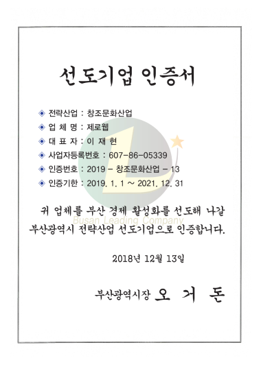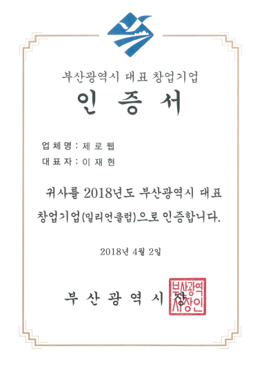 부산 대표 창업기업 인증